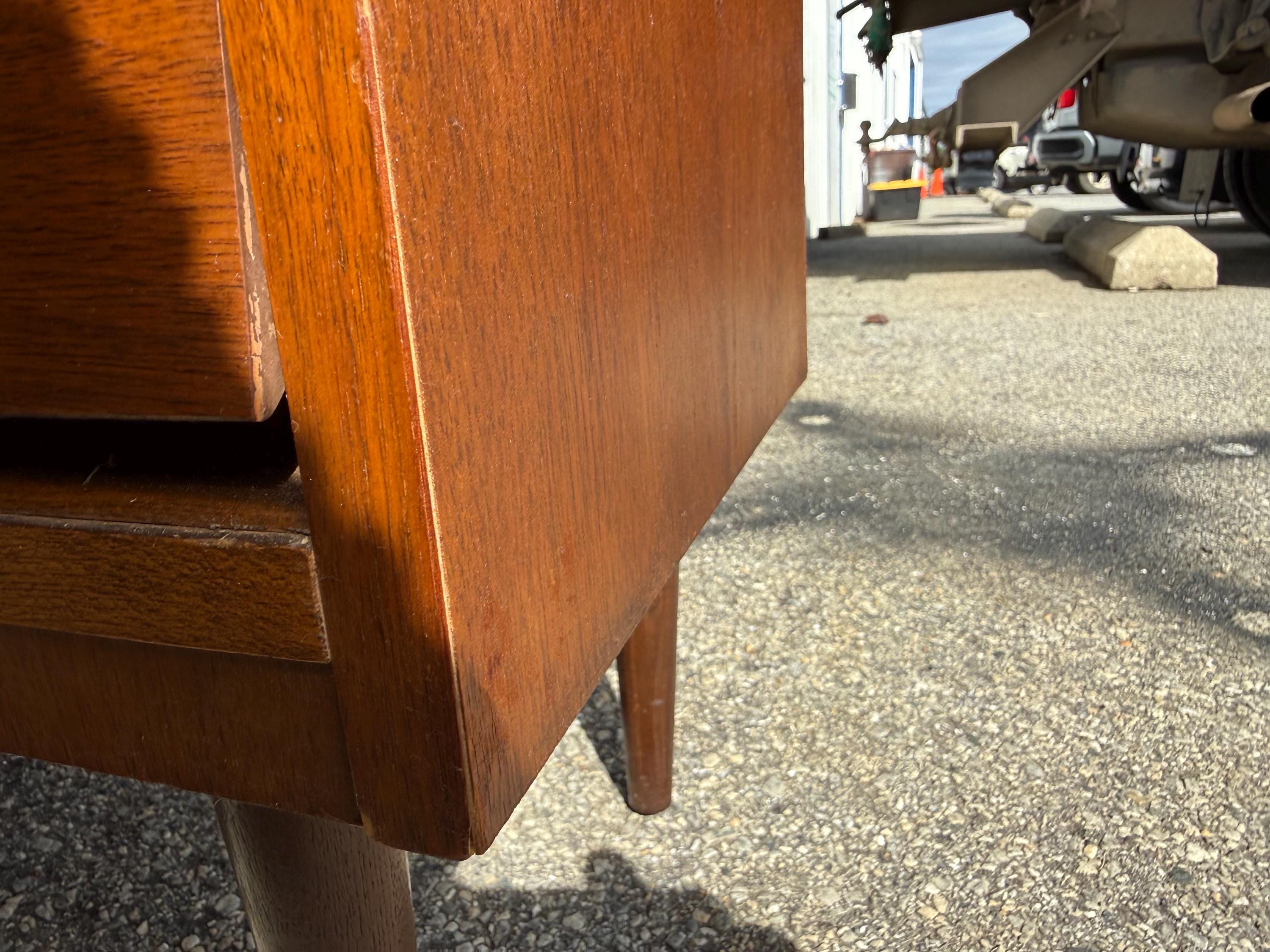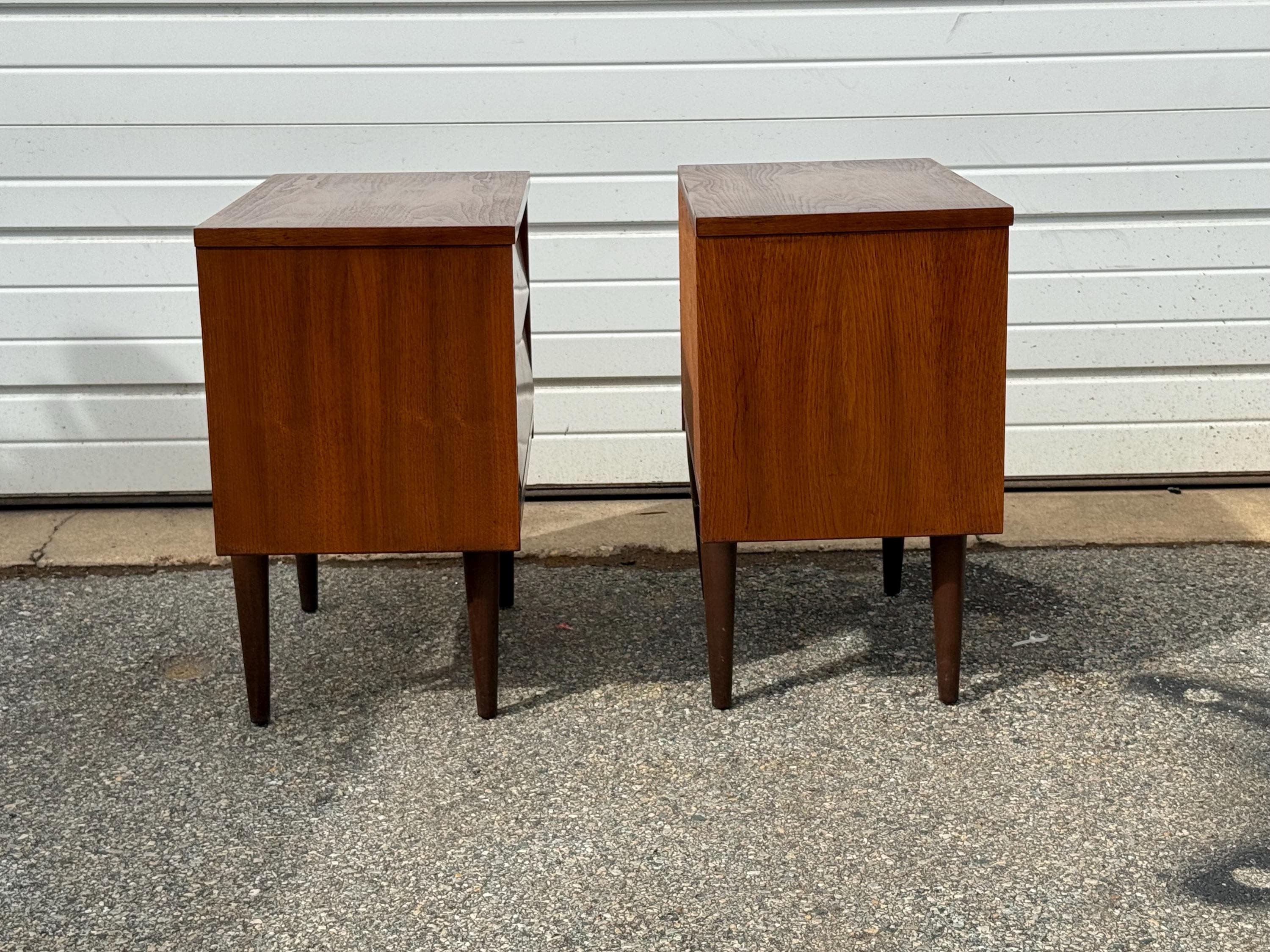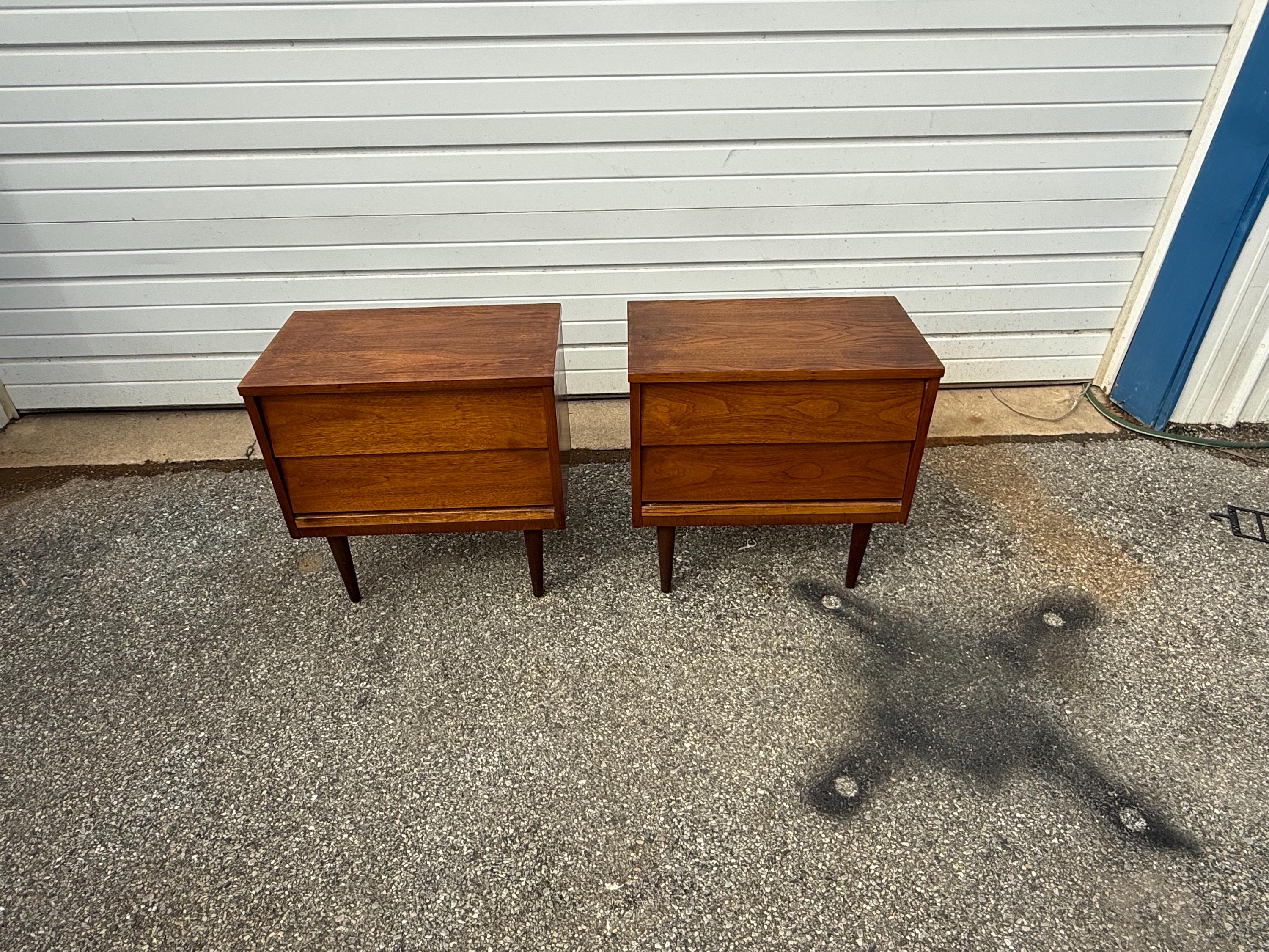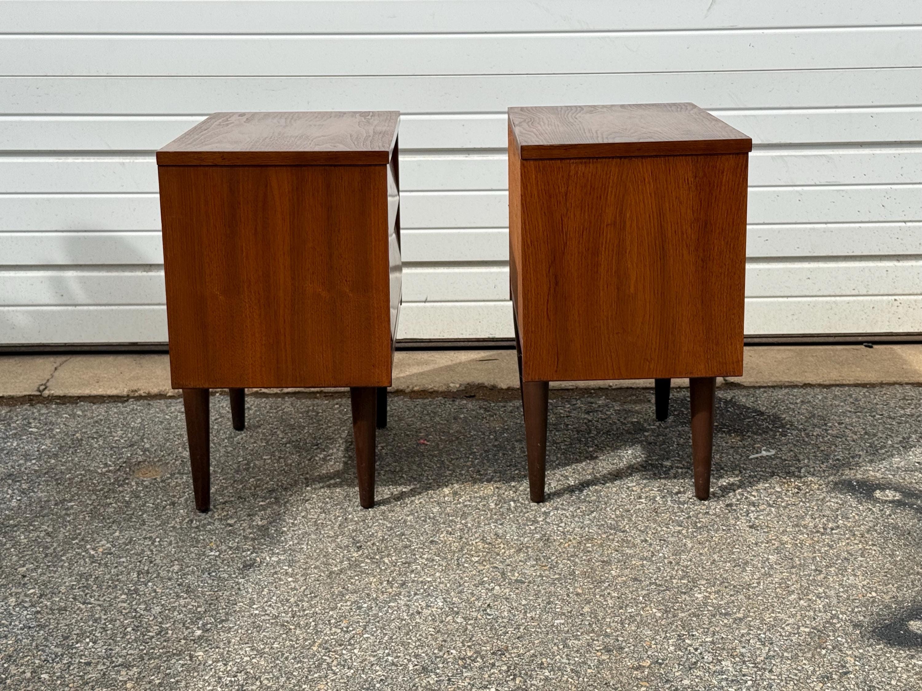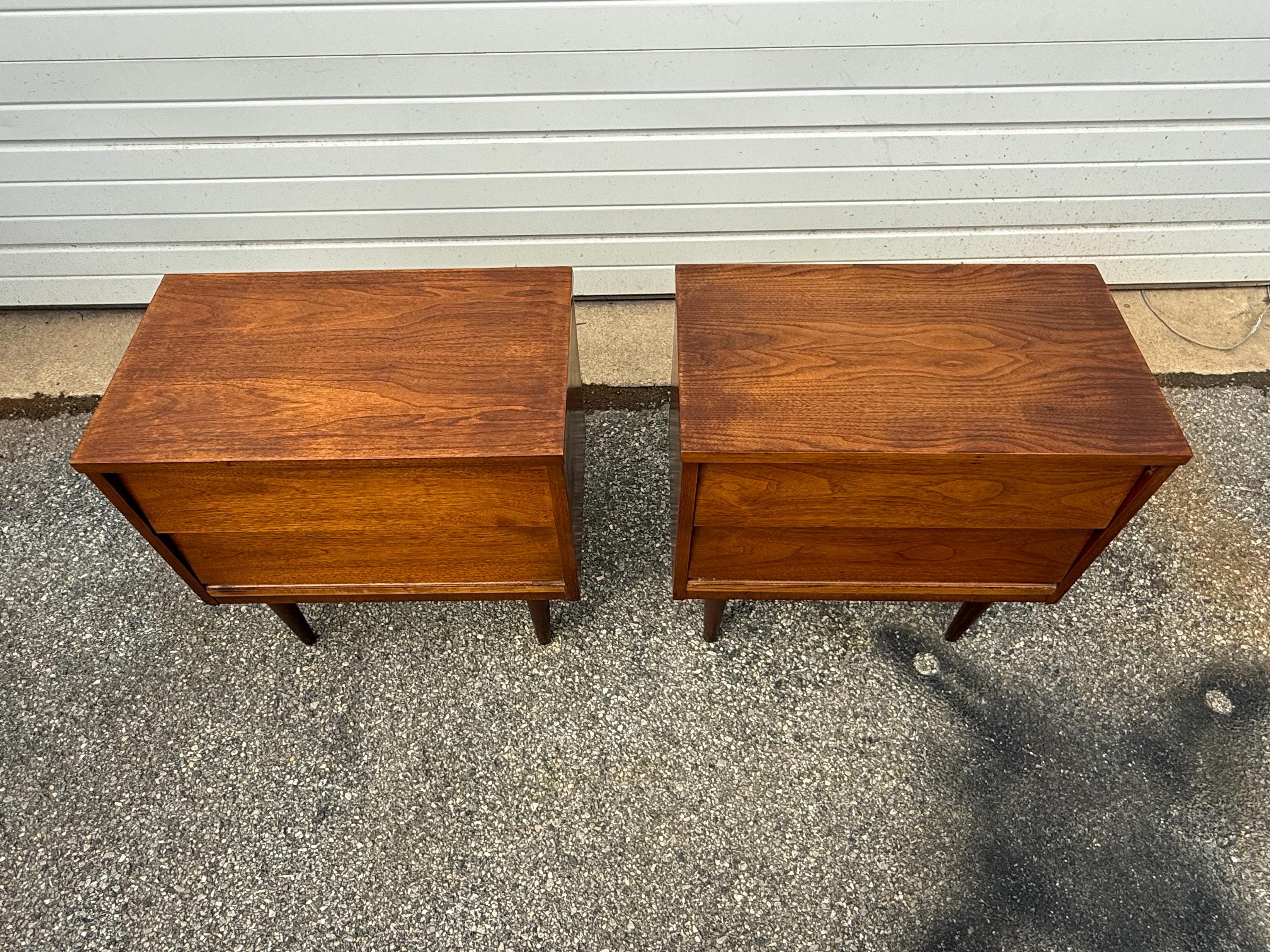Pair of Mid-Century Modern Johnson Carver Style Walnut Nightstands with Pencil Legs