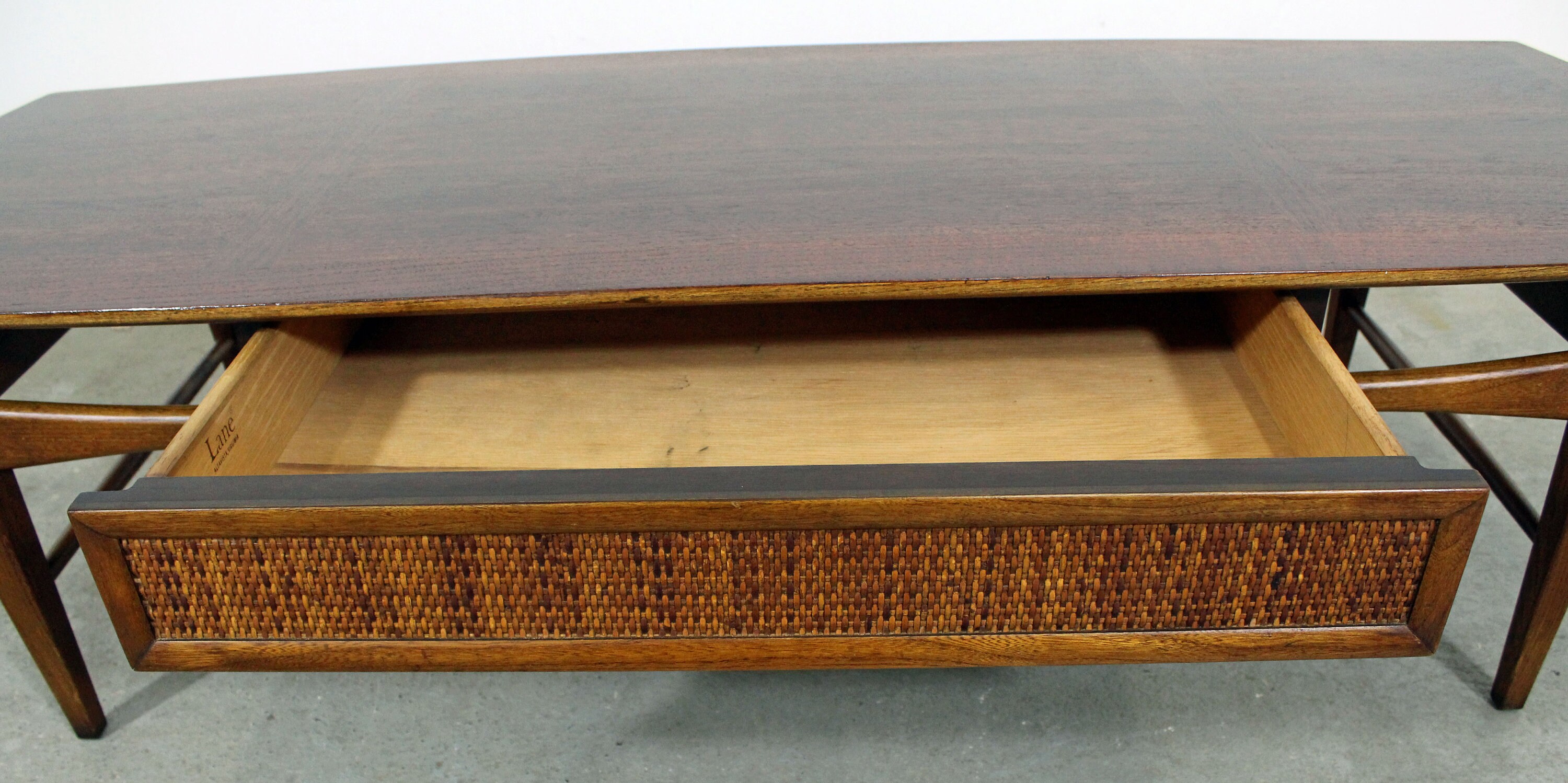 Mid-Century Danish Modern Lane Esteem Caned Drawer Floating Top Coffee Table