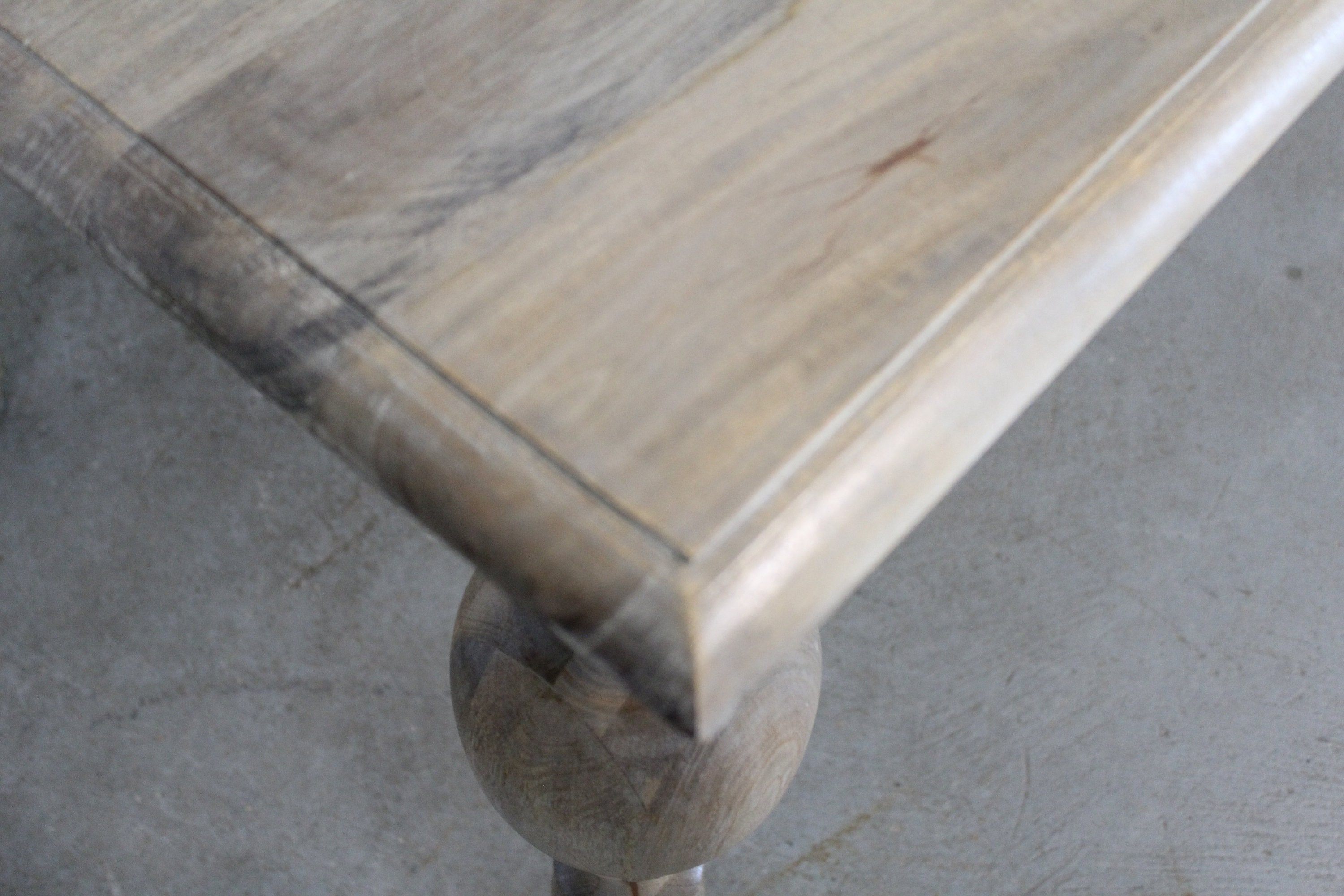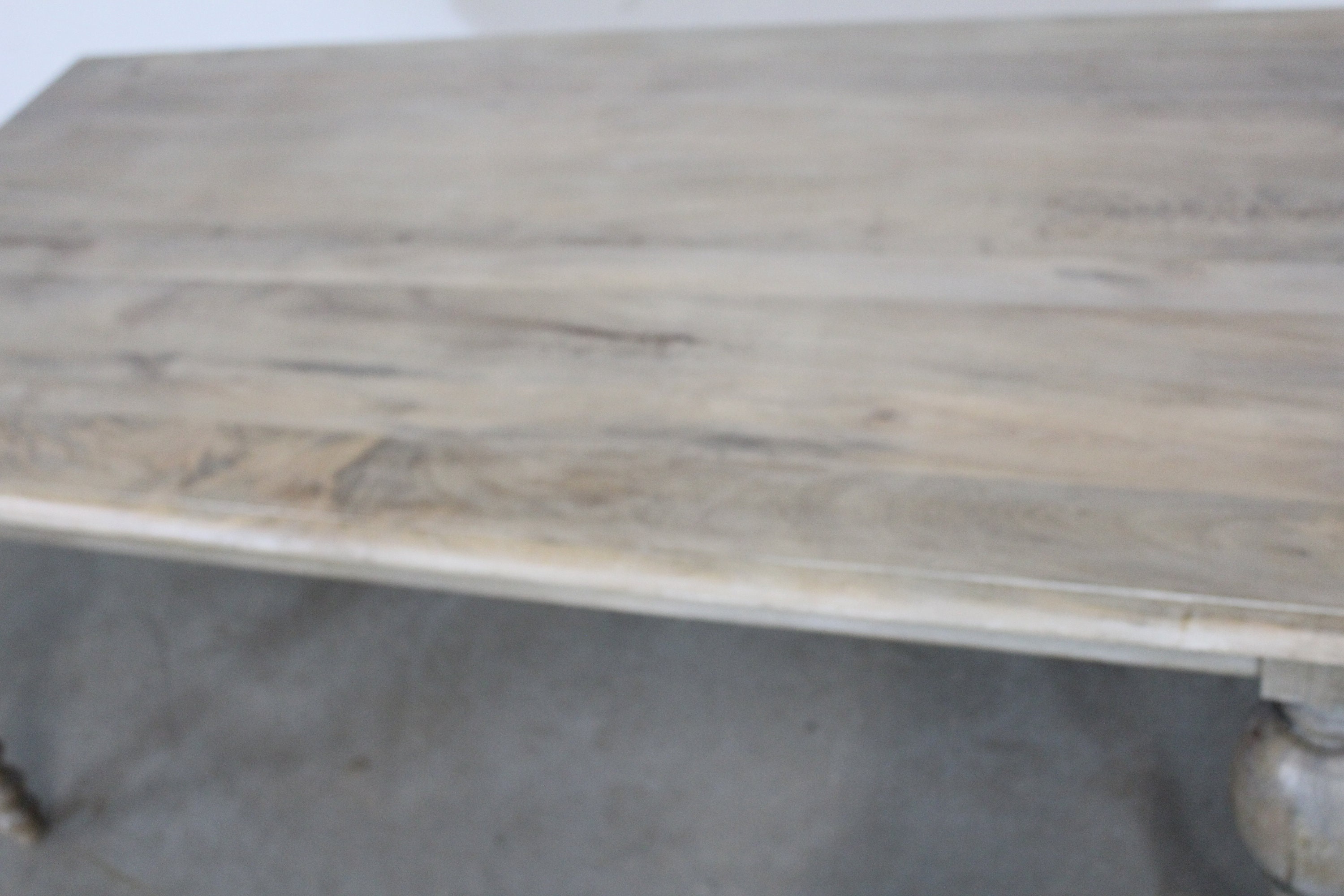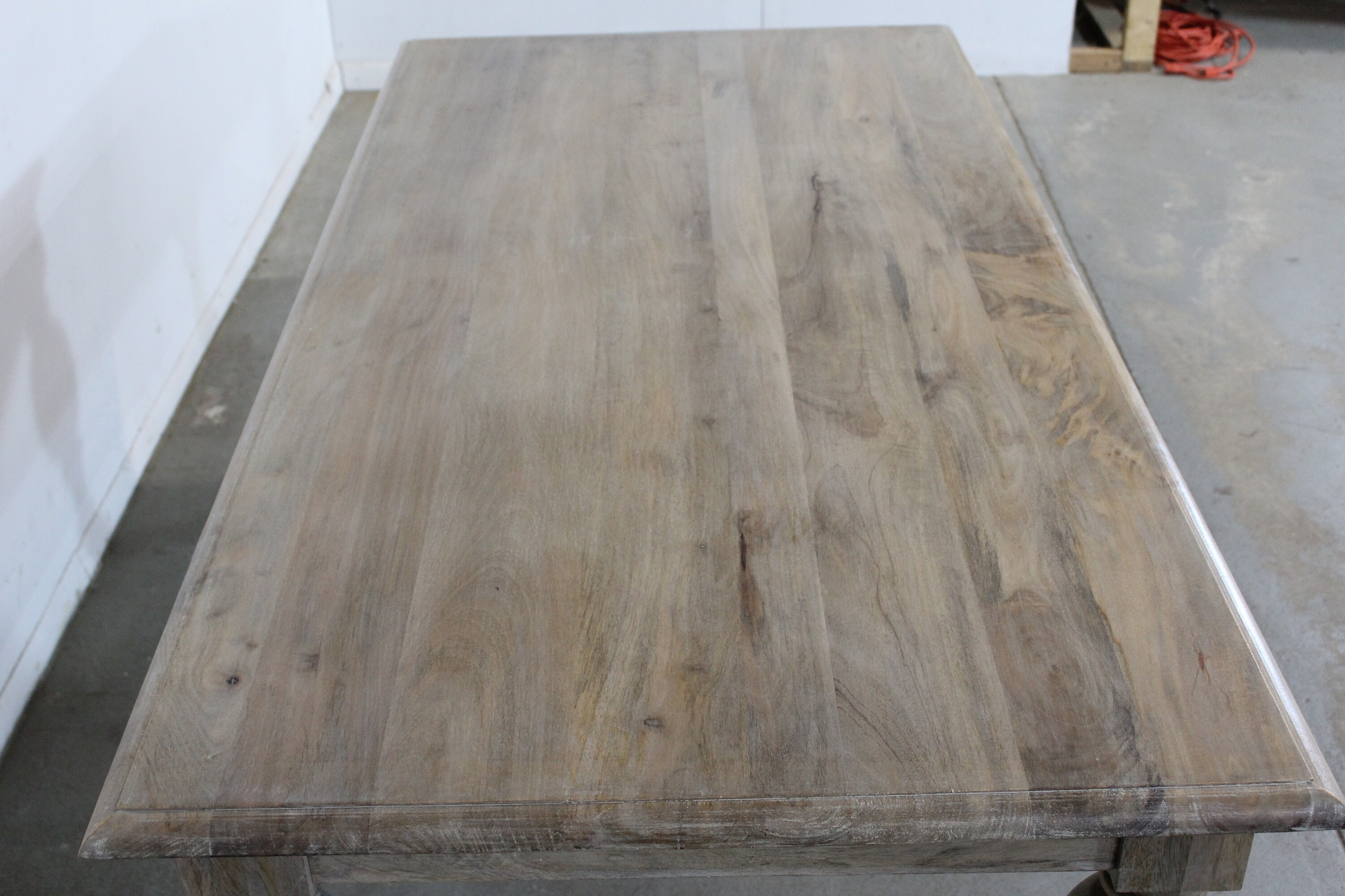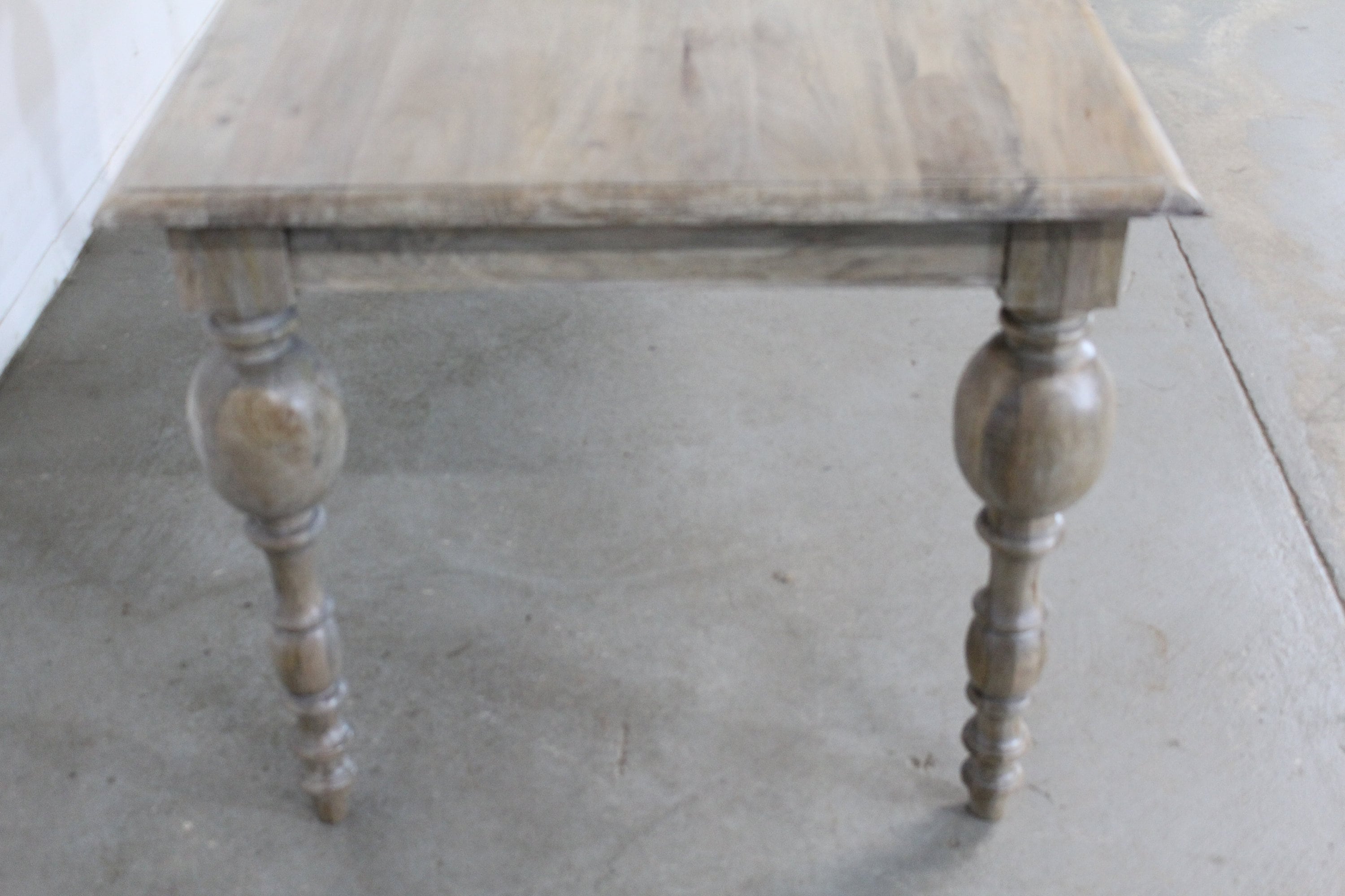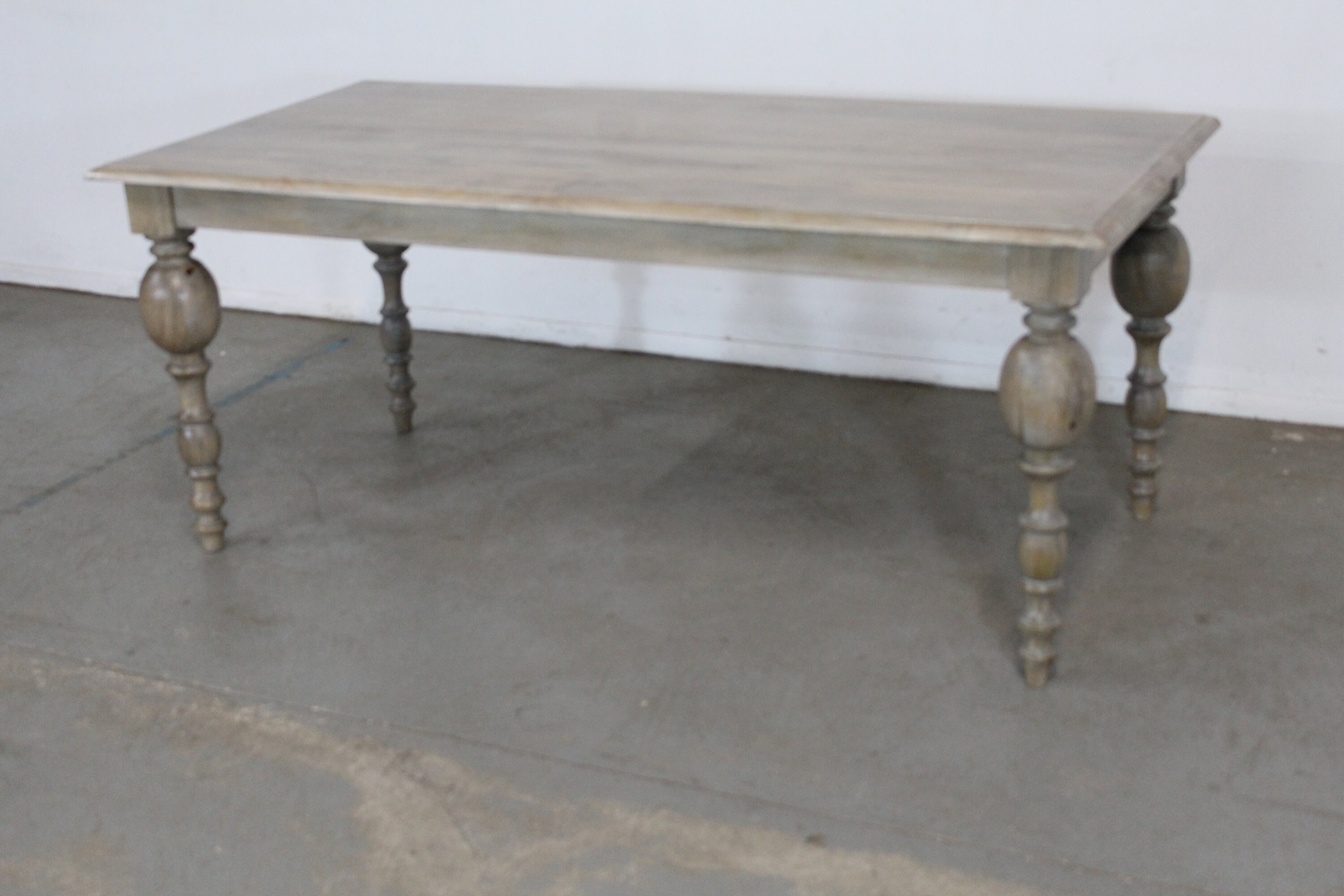 Offered is a solid wood French country dining table. It has a great look to it with carved legs and a rustic finish. This piece has never been in a home and is a floor model. This is a solid wood table top. Each table has a rustic finish and will have slightly different tones. Slight imperfections on tabletop add to the rustic feel- see photos. A great table to add to your home.